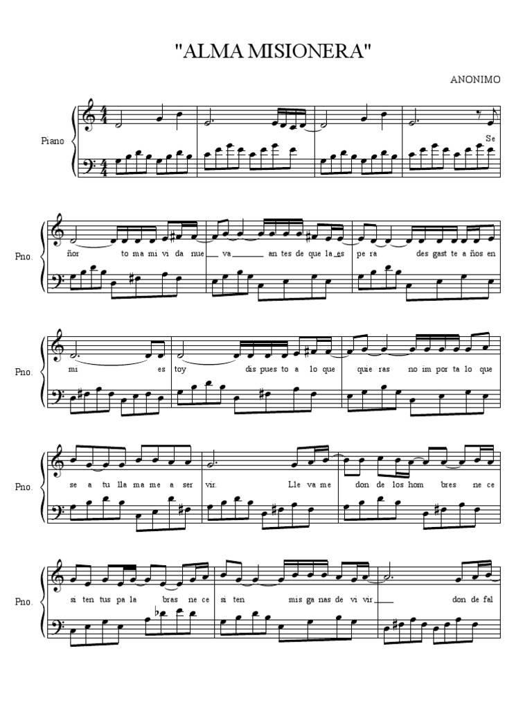 Pdf Alma Misionera Partitura Completa Joscar Salazar Academia Edu - Re sim la mi7misioneros para el mundo del 2000 conforme a tu misericordia,necesitas y yo quiero estar ahi, re la re mi7a tu lado, caminando junto a ti, conforme a la multitud de tus piedades.misioneros del 2000.