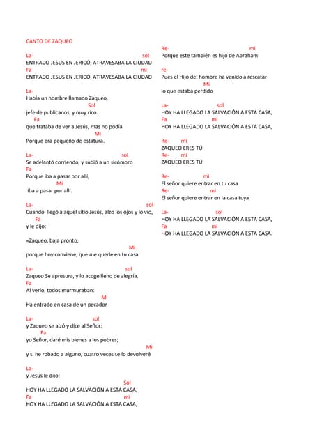 Canto Como Zaqueo / La descarga en pdf la teneis en la seccion correspondiente. Canto Como Zaqueo : Hoy ha llegado la salvacion a esta casa.