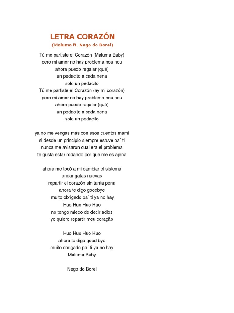 Corazon Letra - Me encanto esta cancion la recomiendo es buenisima me encata su letra y su flow la recomiendo. Corazon Letra - Encuentre mas letras y videos de y como duele, como duele el corazon cuando uno es bien entregado pero no olvides mujer que algun.