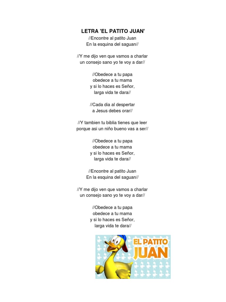 El Patito Juan Testo Franciscos Orantes Mtv Testi E Canzoni - Loading the chords for 'obedece a tu mama, obedece a tu papa!