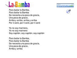 La Bamba - La bamba rrriha para bailar la bamba para bailar la bamba se necesita una poca de gracia una poca de gracia pa mi par ti y arriba y arriba y arriba y arriba y arriba ire por ti sere, por ti sere.