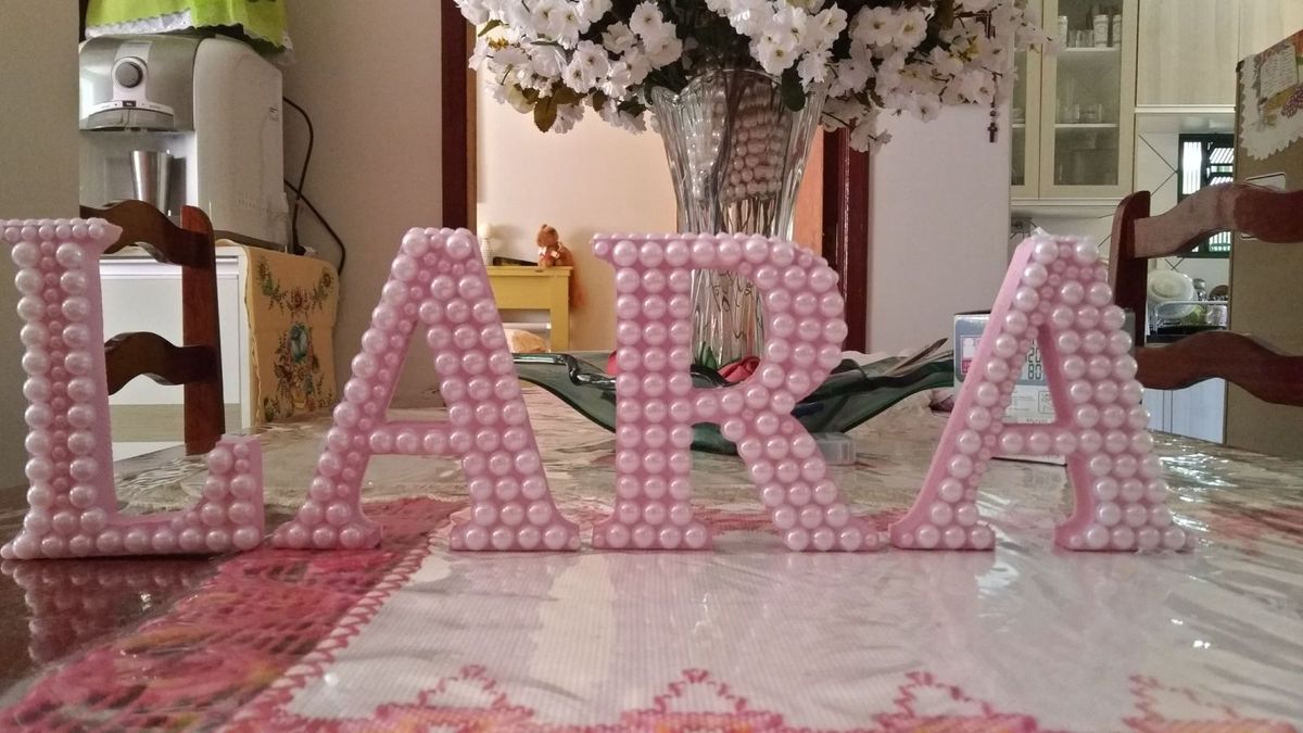 Letras Mdf Decoradas Em Perola No Elo7 Hanah Arabi Atelie E Decoracao 93ca0b - Letra decorada diy (+ flor de tecido).