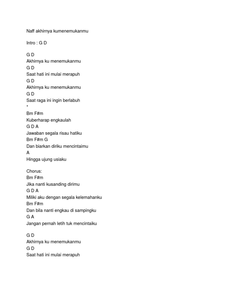Naff Akhirnya Ku Menemukanmu Chord - Bm f#m kuberharap engkaulah g d a jawaban segala risau hatiku bm f#m g dan biarkan diriku mencintaimu a hingga ujung usiaku.
