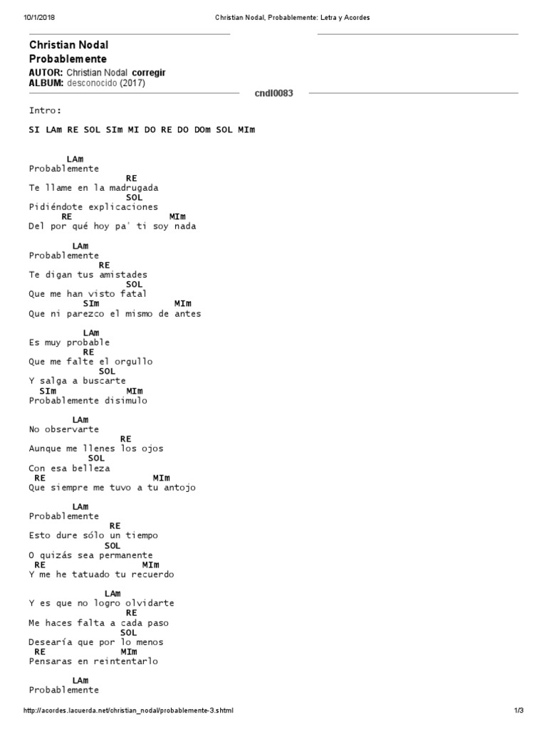 Probablemente Letra Y Acordes - Punteo, letra y acordes para guitarra42 jam sessions · chords: Probablemente Letra Y Acordes : Para que caigas en cuenta.