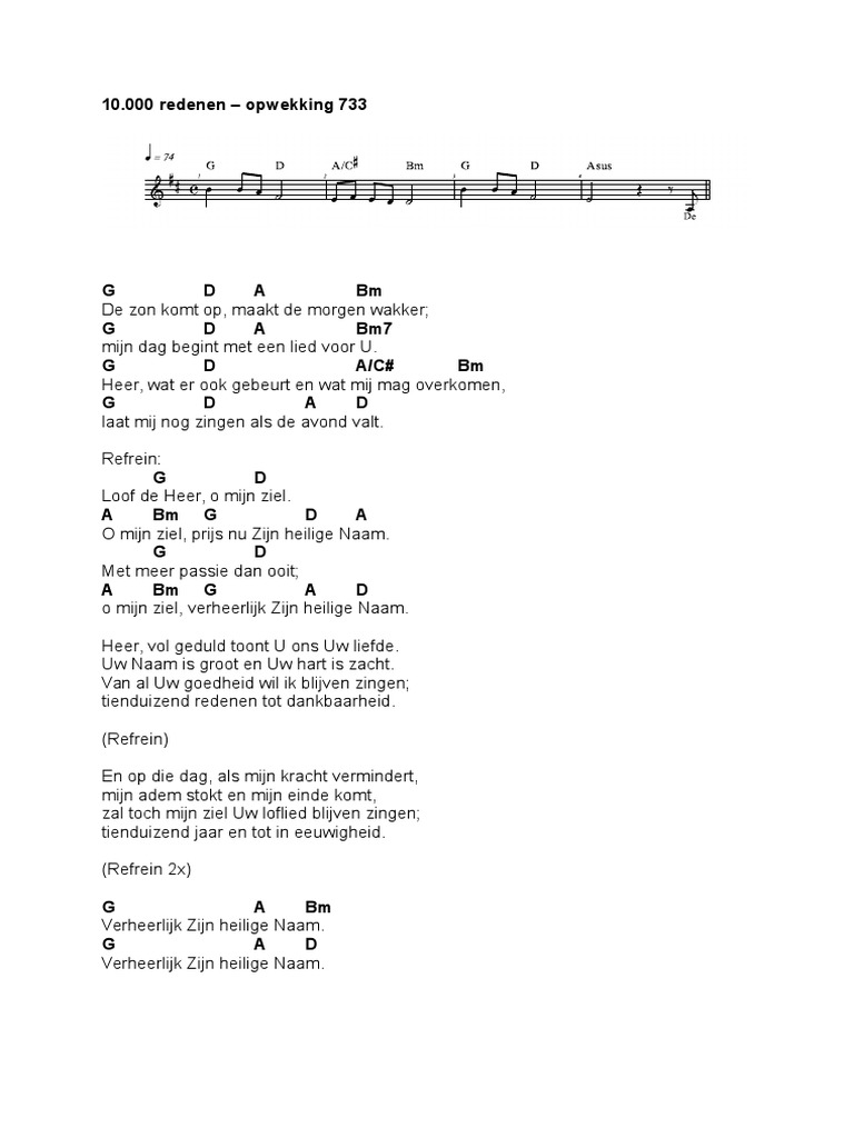 Opw 733 Tienduizend Redenen Youtube - Bladmuziek is muziek die op papier genoteerd is.