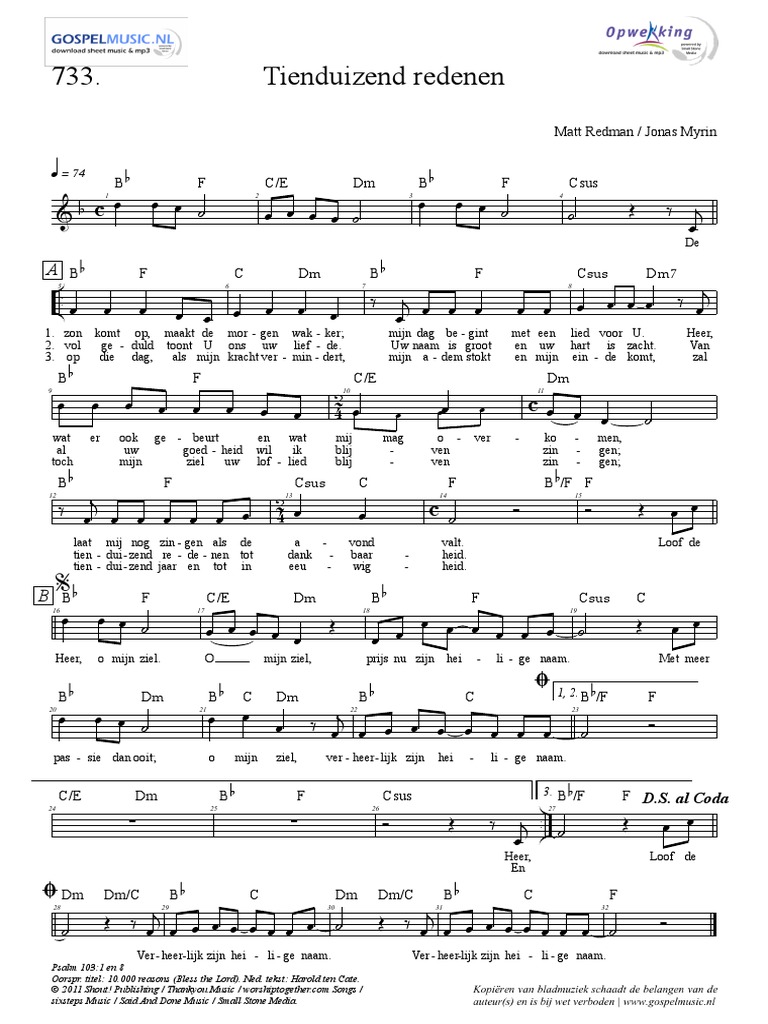 Gratis Bladmuziek 10 000 Redenen Cip Nl - Includes midi and pdf downloads.