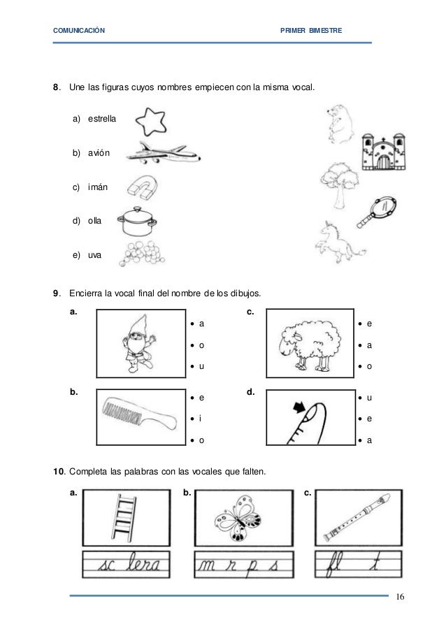 I Bimestre - Material sobre vocales para ninos.