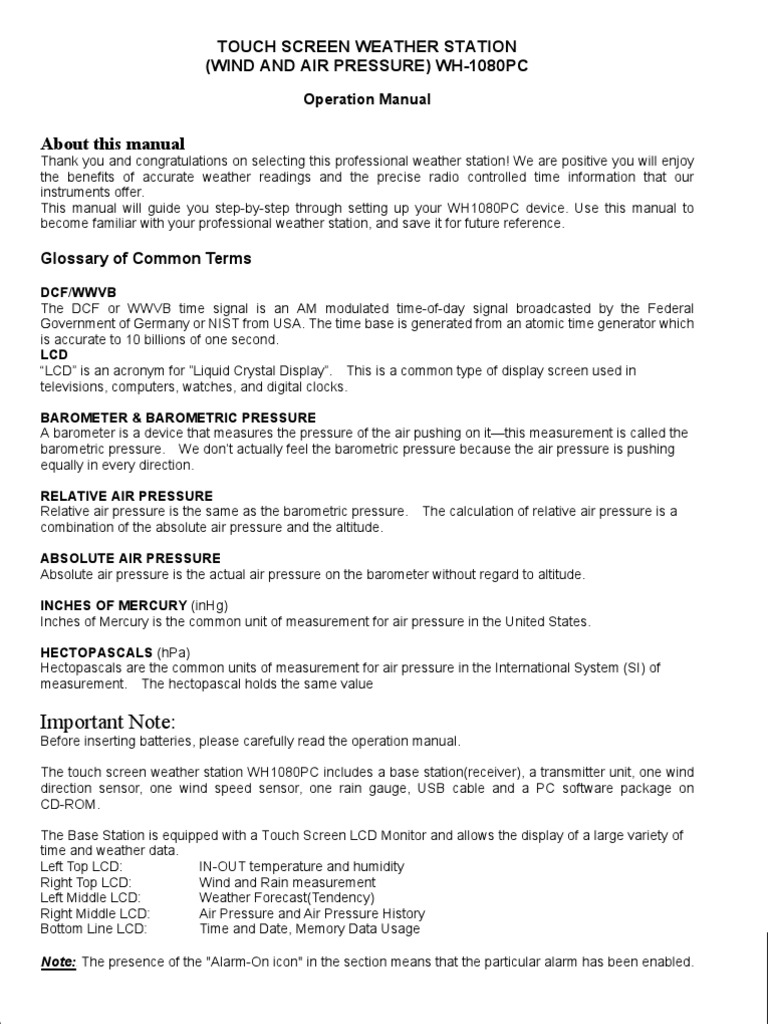 Conrad Energy Wh1080 Wireless Weather Station Wh1080 Data Sheet Manualsbrain Com - This operation manual is part of this product and should be kept in a safe place for future reference.