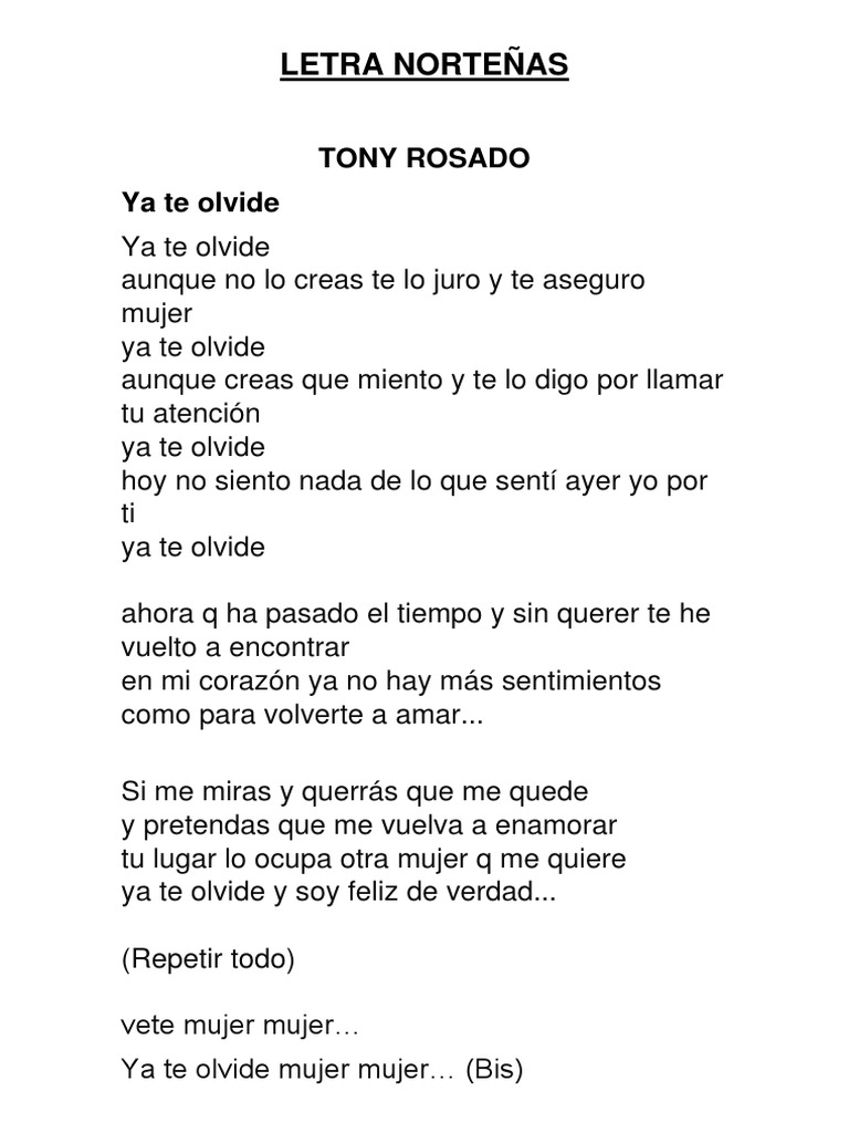 Letra Nortenas Las Emociones Autosuperacion - * letra ya te olvide es una cancion de magia sensual.esta cancion a visto 871 personas.magia sensual canta con estilo cumbia nortena.